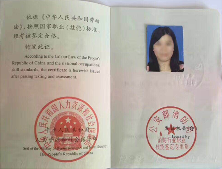 此次学习考证的是建(构)筑物消防员(初级),资格证是国家消防总局和人社部联合盖章颁发(永久),结业证书是培训学校颁发。